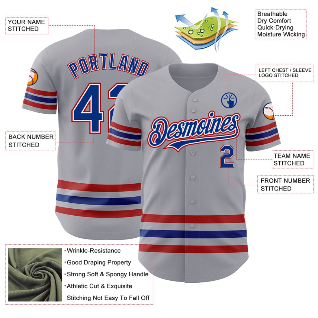 Custom Gray Royal-Red Line Authentic Baseball Jersey