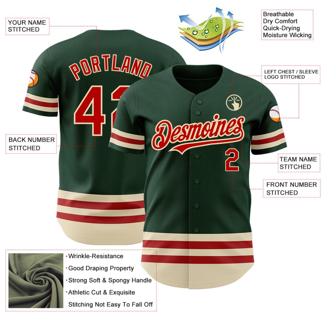 Custom Green Red-Cream Line Authentic Baseball Jersey